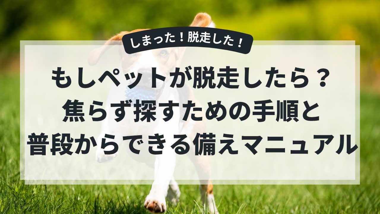 「窓が開いてた!」「玄関から飛び出してしまった!」 ペットが突然いなくなると、頭が真っ白になりますよね。